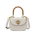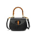 Exterior Features Gorgeous Smooth Nappa Leather Satchel/Shoulder Bag with Real Bamboo Handle & Bamboo Turn-lock closure