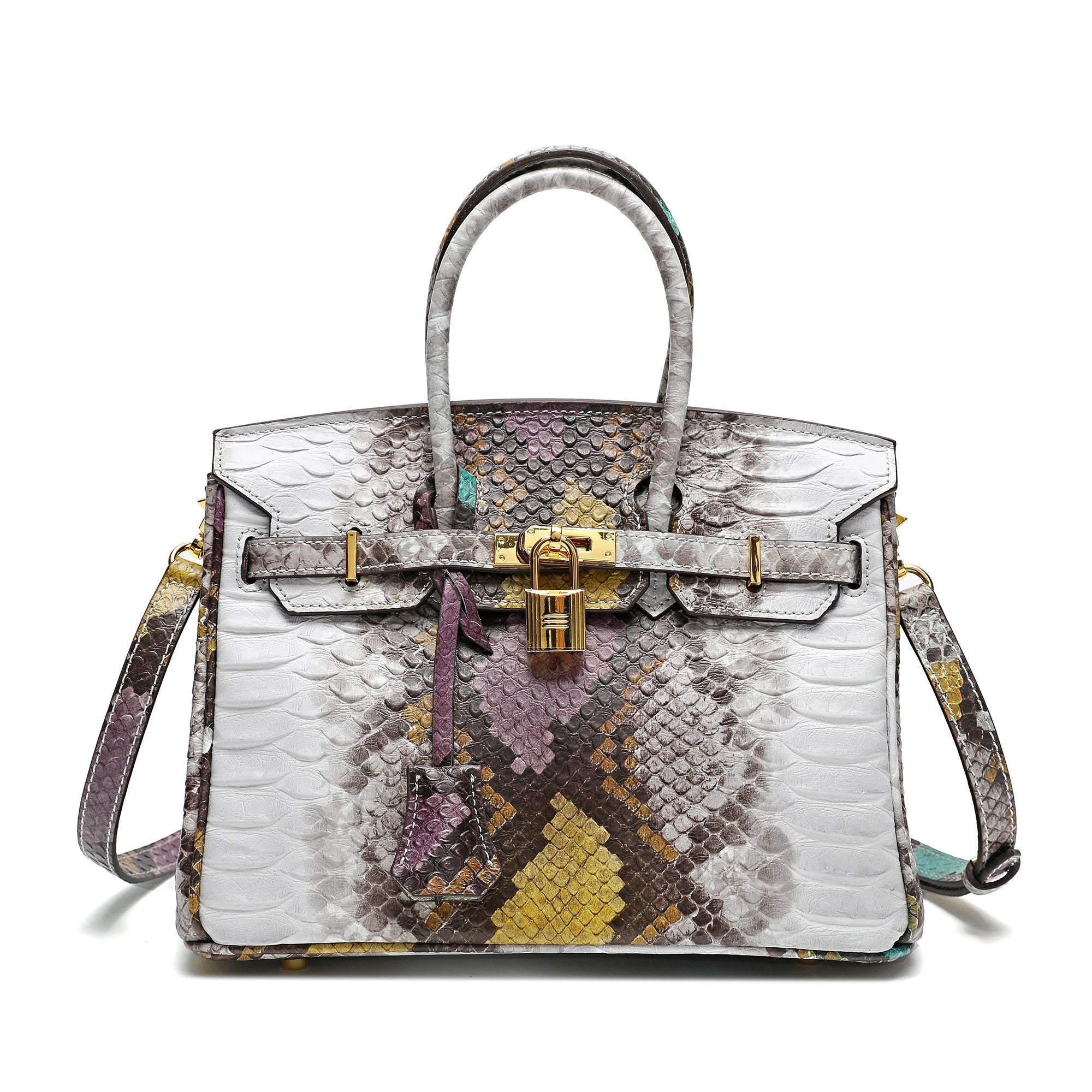 Top-Handle Satchel/Shoulder Bag with a Foldover Flap & a decorative Lock, All in a beautiful Multi-Color Snake Pattern .